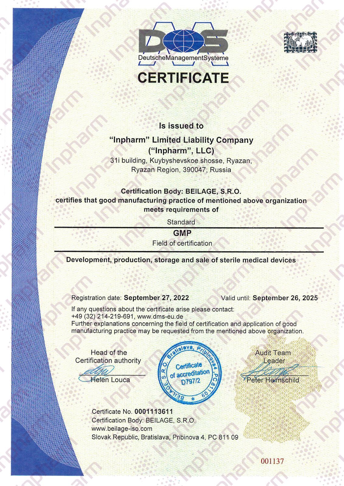 — all procedures and manufacturing processes are subject to periodic validation, this ensures that they comply with the guidelines of good manufacturing practice (GMP);